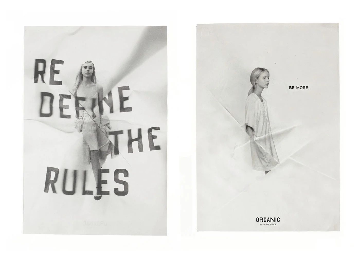 These poster ads are inserted into high end magazines like Vogue, Elle, and others that are geared towards the fashion world. Within the magazine, the contrast between the glossy, richly colored photos and the rough black & white newsprint posters serves to reference the concept of doing things your way and not conforming to standards.